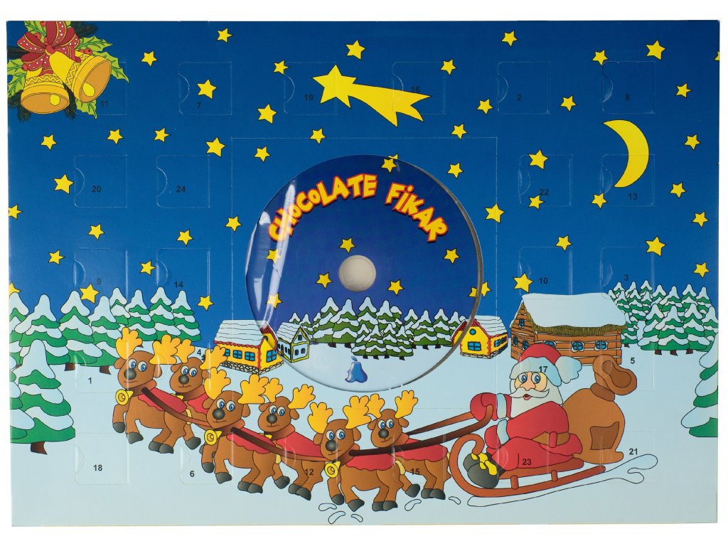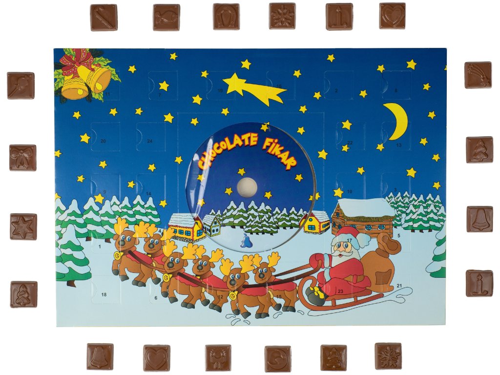 Vychutnejte si kouzlo Vánoc každý den s naším adventním kalendářem! Každé okénko ukrývá lahodnou čokoládku o váze 60 g, která potěší malé i velké. Součástí kalendáře je také CD s tradičními vánočními koledami, které vám vytvoří pravou sváteční atmosféru doma. Ideální dárek pro rodinu, přátele nebo pro zpříjemnění vlastního adventu. Tento originální adventní kalendář v klasickém formátu A4 obsahuje: