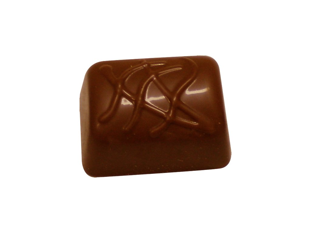 Belgische Praline mit Füllung aus Pistazie, Orange oder Erdbeere