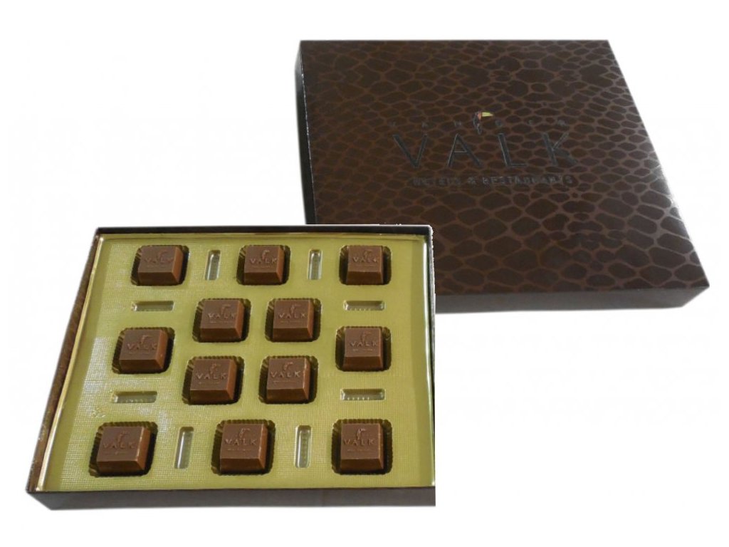 Vollmilchschokolade mit Relief aus weißer und Vollmilchschokolade.