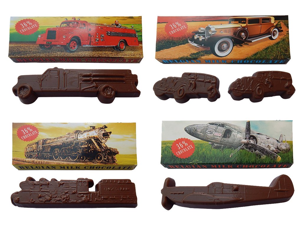 Für alle kleinen und großen Liebhaber von Fahrzeugen! Schokoladen-Transport ist ein verspieltes Schokoladen-Set voller Autos, Züge, Busse oder Verkehrsschilder – alles aus köstlicher Schokolade gefertigt, mit Liebe zum Detail und Qualität.